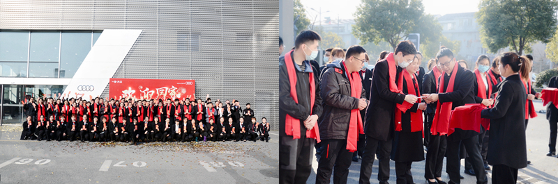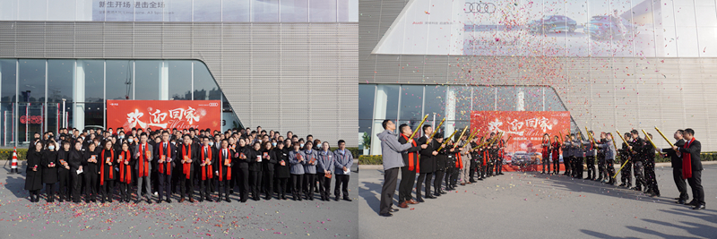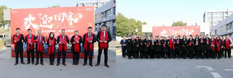 初七清早,汽車事業(yè)部董事長莫見忠、汽車事業(yè)部執(zhí)行總經(jīng)理兼杭州德奧總經(jīng)理沈美琴,杭州城西德奧執(zhí)行總經(jīng)理徐天紅,東陽德奧執(zhí)行總經(jīng)理張永濤,桐鄉(xiāng)德奧執(zhí)行總經(jīng)理袁其祥,寧波德奧執(zhí)行總經(jīng)理沈一彪分別攜各店部門總監(jiān)打響新春第一炮,喜迎新春開門大吉。
