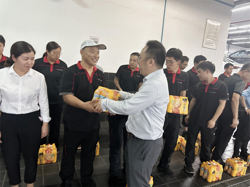 寧波德奧執(zhí)行總經(jīng)理沈一彪攜部門總監(jiān)向一直堅(jiān)守在高溫環(huán)境下作業(yè)的一線員工、保安、保潔帶去了暖心的問(wèn)候,并送上清涼解暑飲品。同時(shí),沈總叮囑大家要?jiǎng)谝萁Y(jié)合,注意身體健康,防止高溫中暑,要更科學(xué)、更合理地安排好作息時(shí)間。